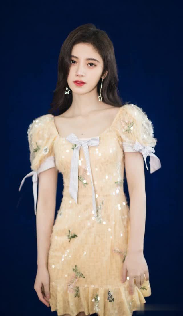 如果说倪妮和春夏的都是比较独特的气质,那么鞠婧祎就属于甜美可爱的类型了,看到她穿淡黄色的连衣裙,甜美又吸睛,这是可爱的小仙女吧?鞠婧祎是很娇小的女孩,身高只有159cm,但她长得好看,身材比例还是不错的,穿着这款连衣裙,也凸显出好看的锁骨和肩线,气质很甜美迷人。