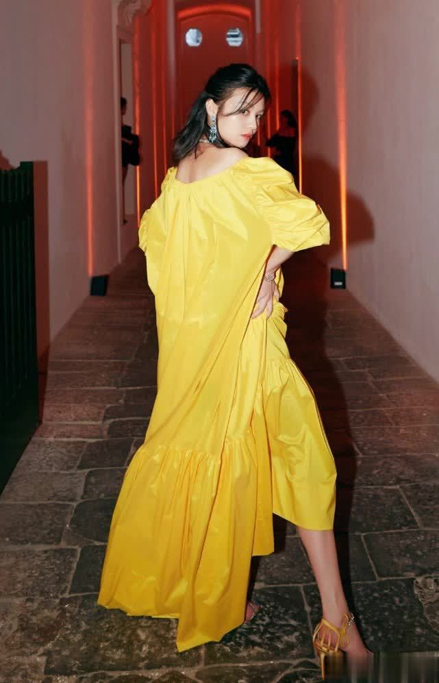 也许很多人对春夏并不是很熟悉,她是一个90后的女演员,虽然年龄不大,但演技很不错,还获得了金像奖影后。她的颜值不算高,但很有辨识度,气质也是很独特的。她这次穿着一条黄色的连衣裙,属于很宽松的版型,有点像睡裙的类型,搭配同色系的高跟鞋,可以很好地提升气质。